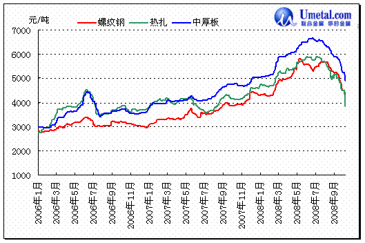 从奥运会开幕以后的2个多月内,以上情况已经非常明显的表现出来,中国国内的建筑钢材价格比2个月前下跌22-24%%,扁平材下跌了35-38%,这样短期内的大幅暴跌,历史上还从未有过。