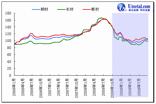 中国钢铁工业协会公布的全国钢材价格指数为140点,虽然比最高时的162点回落了14%,但仍比2007年同期高22%,比2006年同期高32%,比2005年同期高25%,比2004年同期高16%,仍属历史高位,预计未来价格还可能有相当深度的回落。