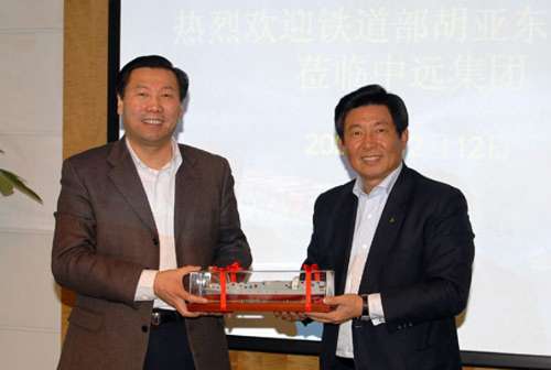 图:中远总裁魏家福(右)与铁道部副部长胡亚东