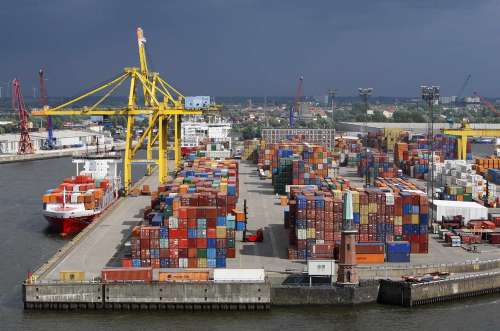 图:多个航运商会分别表示支持扩大海运企业赔偿责任的《鹿特丹规则》在今年9月通过。图为德国汉堡一港口