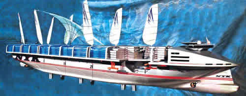 图:日邮“超级生态”货柜船集最佳能源与动力组合,由液化天然气,环保电池和风帆动力组成,21年后面世