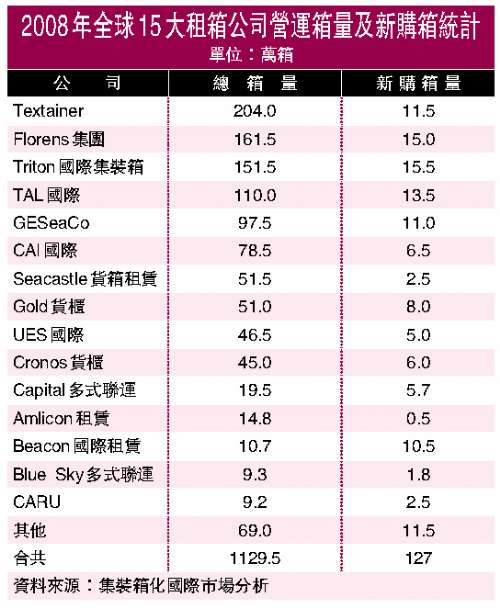 【大公报讯】英国《集装箱化国际》杂志昨日发布8月份集装箱租赁市场分析报告,指出租家缩减租箱开支,加上所有制箱厂生产线停产,令上半年全球总租箱量下跌2%,预期需求收缩将迫使更多租箱公司被收购或进行合并。全球最大的租箱公司美国天泰集装箱租赁集团(Textainer)认为,由于大部分制箱厂房已经停产,年底前极有可能不会有新箱投入市场。 该分析报告主笔福斯克罗夫称,今年将是租箱业界面临的最困难一年。尽管未有主要班轮公司倒闭,不过标箱租金和租箱率持续下跌,正加剧租箱公司的财政压力。 上半年租箱率只有85%,创下6年低位。租箱量为1040万箱,闲置箱量已达150万箱。目前班轮公司和其它租家正积极削减各项成本,集箱需求亦大幅减少,所有制箱生产线均停止运作,部分厂房更已关闭一年以上。全球上半年总箱量按年下跌2%,超过50万标箱被废弃或转卖回收。 上半年租箱率创6年低位 集箱需求下降,日租金和新造箱价亦随之减少。去年平均日租金为每箱0.75美元,新造箱价为每箱2350美元,今年上半年则已分别回落至0.65美元和2050美元,进一步蚕食租箱公司利润和资产值。 天泰集装箱租赁集团就完成收购英国租箱公司Amficon Leasing和德国租箱公司Capital International,令旗下总箱量上升30万箱,增长15%。福斯克罗夫预期,随著租箱公司财务压力日增,市场上将出现更多合并和收购活动,天泰已是明显的主导者。 截至08年底,该公司总箱量达204万标箱,仍是全球最大的租箱公司,新购箱则为11.5万箱。中远旗下的佛罗伦集团紧随其后,总箱量为161.5万箱,去年增幅达7%,是各家主要租箱公司中最高,新购箱为15万箱。 福斯克罗夫指出,根据过往经验,班轮公司在经历海运业低潮时普遍倾向租箱,他认为只要市况稍为好转,租箱公司仍有望上调租金,从而增加收入,可以避过被吞并的命运。 天泰逆市赚钱 盈利升2% 另外,天泰昨日公布次季业绩,总收入大跌22%,至5440万美元,录得3100万美元盈利,上升2%。上半年总收入则下跌20%,至1.1亿美元,录得5190万美元盈利,上升8.7%。该公司以低价提早赎回05年发行的6500万美元债券,令公司收益增加1940万美元。 行政总裁马卡隆尼表示,满意上半年整体表现,又认为此前趋于签订长期租约的决定正确,预料长约和更多拥有集箱可带来稳定收入。 该公司次季租箱率为86.9%,较首季的90.7%稍有回落。不过当中超过75%闲置箱均囤积在亚洲。马卡隆尼认为,当海运需求出现回升时,当地的集箱需求会快速消化闲置箱。另外,天泰旗下70%集箱已签订长期租约,有助稳定公司未来财务表现。 他预料,由于大部分制箱厂房已经停产,年底前极有可能不会有新箱投入市场,因此全球总箱量将按年下跌5%,有利集箱供求回复平衡。 天泰在中期报告指,现时手持约3.5亿美元的流动现金,仍打算将资金投放于策略性扩充计划中,包括收购同业和进行购箱回租交易,并会继续增加箱量。
